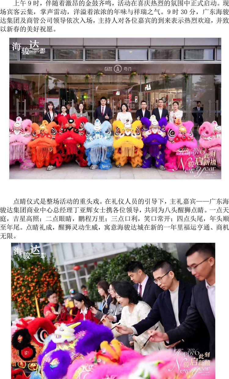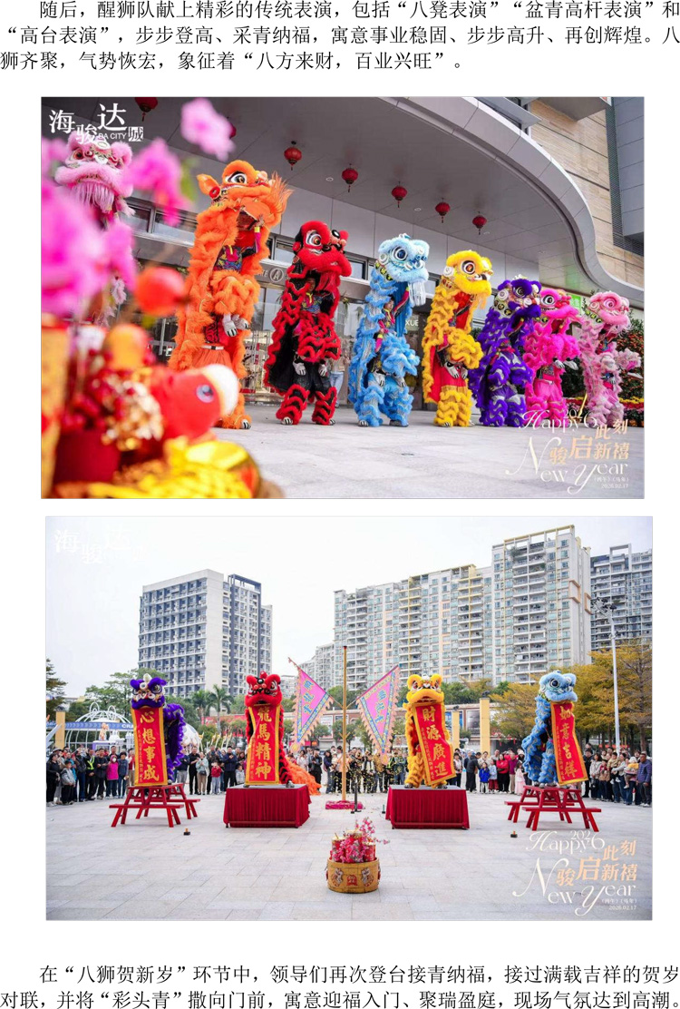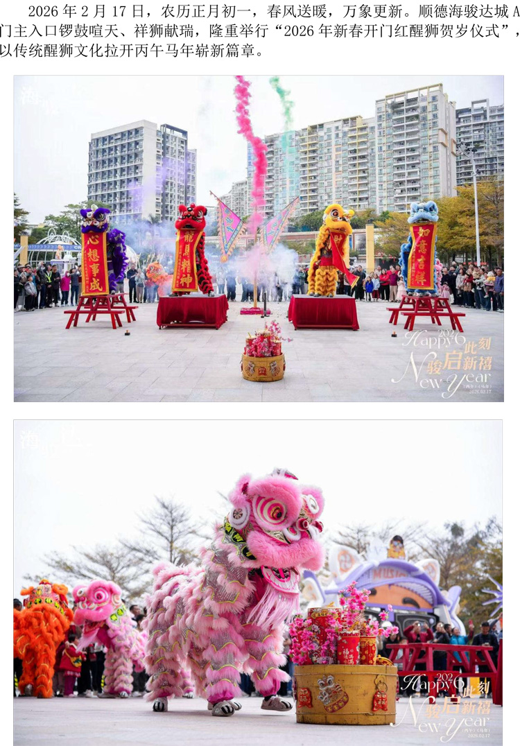 順德海駿達(dá)城2026年新春開門紅醒獅賀歲儀式圓滿舉行
