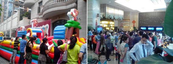 5月18日,海駿達?蜀都1號售樓部門口,巨型充氣城堡矗立,人頭攢動。14:30分,第二期大哥向前沖系列活動拉開序幕,完全延續了上周的熱潮,瞬間引爆全城。業主們早早的排起長隊,無論男女老幼紛紛參加,群情振奮,熱鬧非凡。據悉,本次系列活動“超市大贏家,商品免費拿!“通過比賽決出勝負,獲勝者即可帶走選取的所有物品!并設置了有獎問答游戲,獎品可是大有文章!同時,準點時刻還有大家翹首以盼的幸運大抽獎!除此之外,海駿達蜀都1號本月各種精美禮品齊備,歡迎大家來玩。5月31-6月2日,現場更有兒童節、端午節親子活動,不容錯過!